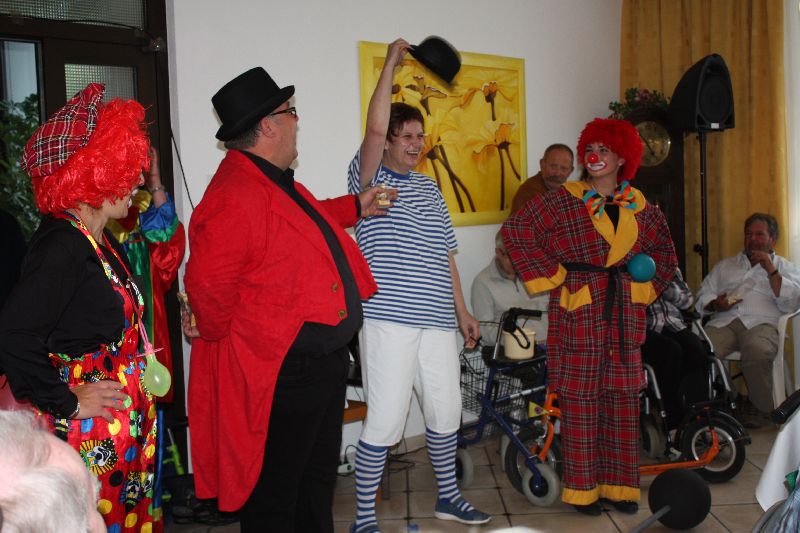 Bewohner und Angehörige waren begeistert von den Turnkünsten der jungen Mädchen, die mit einer Akrobatik-Nummer für Staunen sorgten. Der Zauberer faszinierte die Zuschauer mit seinen Tricks. Zum Beispiel verschwand ein Fünf-Euroschein und tauchte später in einer Apfelsine wieder auf. Nach der anschließenden Klamauk- und Clownnummer, vorgeführt von Mitarbeitern des Pflegeteams, waren sich die Bewohner und Angehörigen einig, dass sie dieses schöne Fest lange in Erinnerung behalten werden.