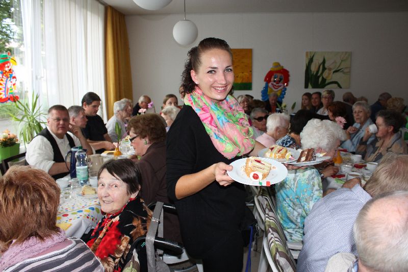 Unter dem Motto „ Kunterbunter Zirkus“ wurde den Bewohnern, Angehörigen und Besuchern ein mit Luftballons, bunten Clowns, Holzponnys und bunten Girlanden geschmücktes Haus, welches an eine Zirkusarena erinnerte, präsentiert. Nach dem gemeinsamen Kaffeetrinken mit dem reichhaltigen Kuchenbuffet, eröffnete Heimleiter Marcus Draheim, verkleidet als Zirkus-Direktor, das Fest mit einer spaßigen Ansprache.